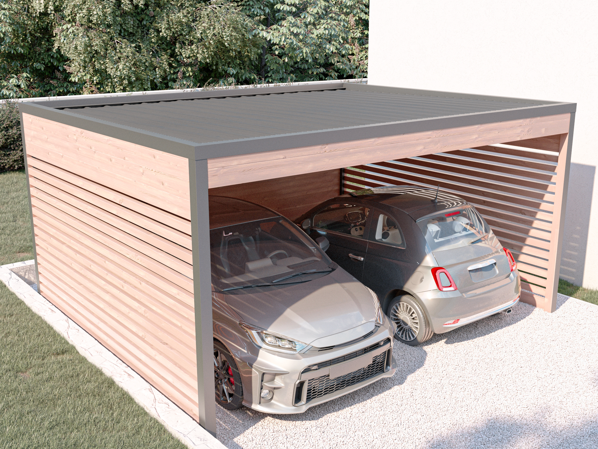 Carport DESIGN 20m² – Bois Douglas épaisseur 55MM – Toiture Bacacier avec voliges