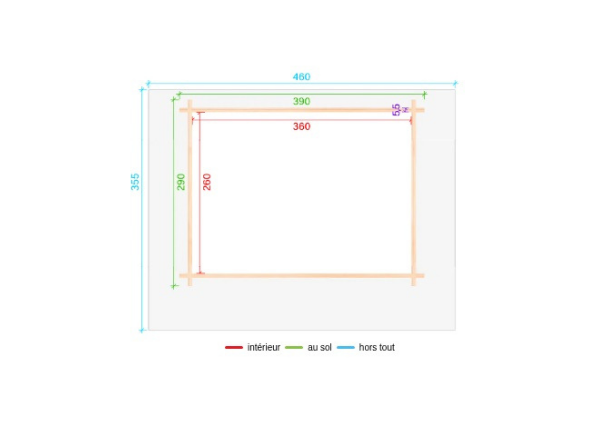 ✔️ Extérieur au sol : largeur 2,90 m x longueur 3.90 m, soit 11,31 m²