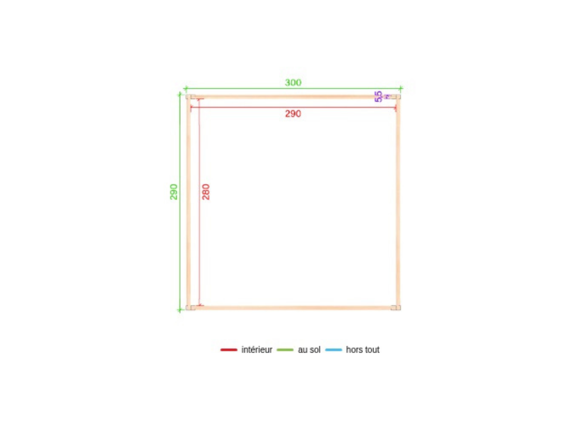 3.00 x 2.90 m, Aluminium & Bois Douglas 55mm, Toit plat